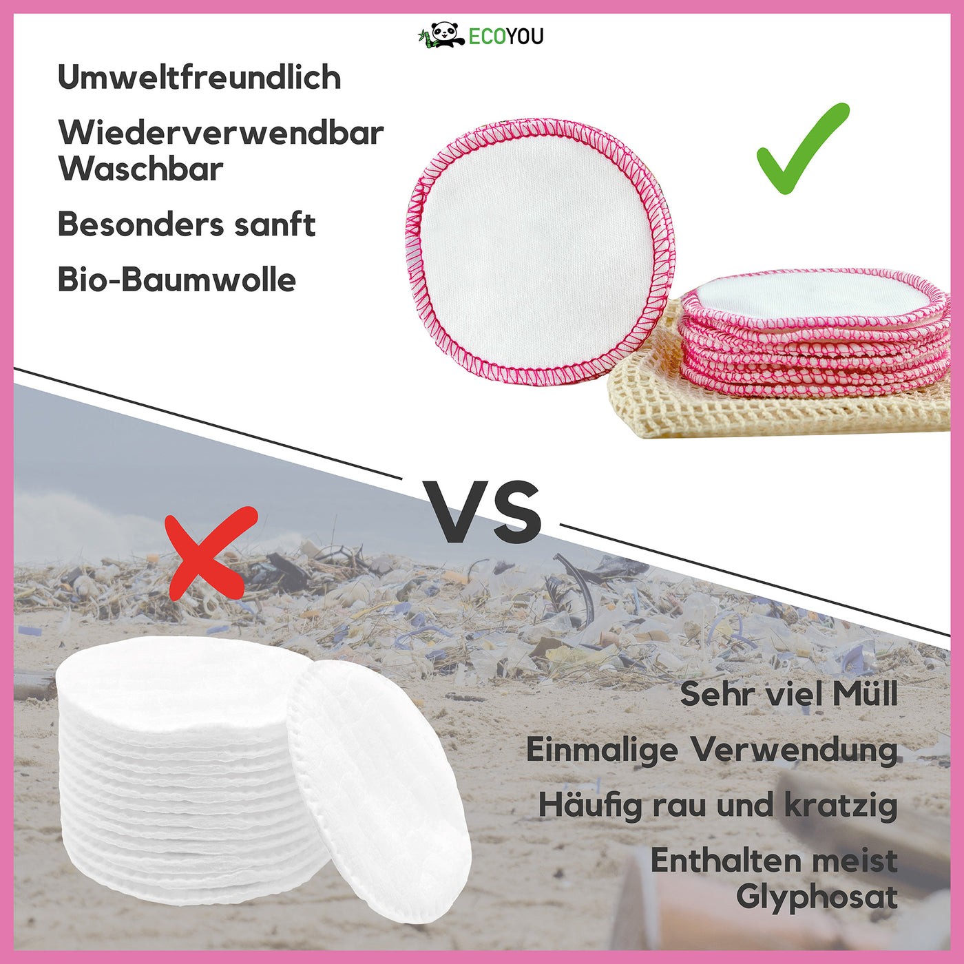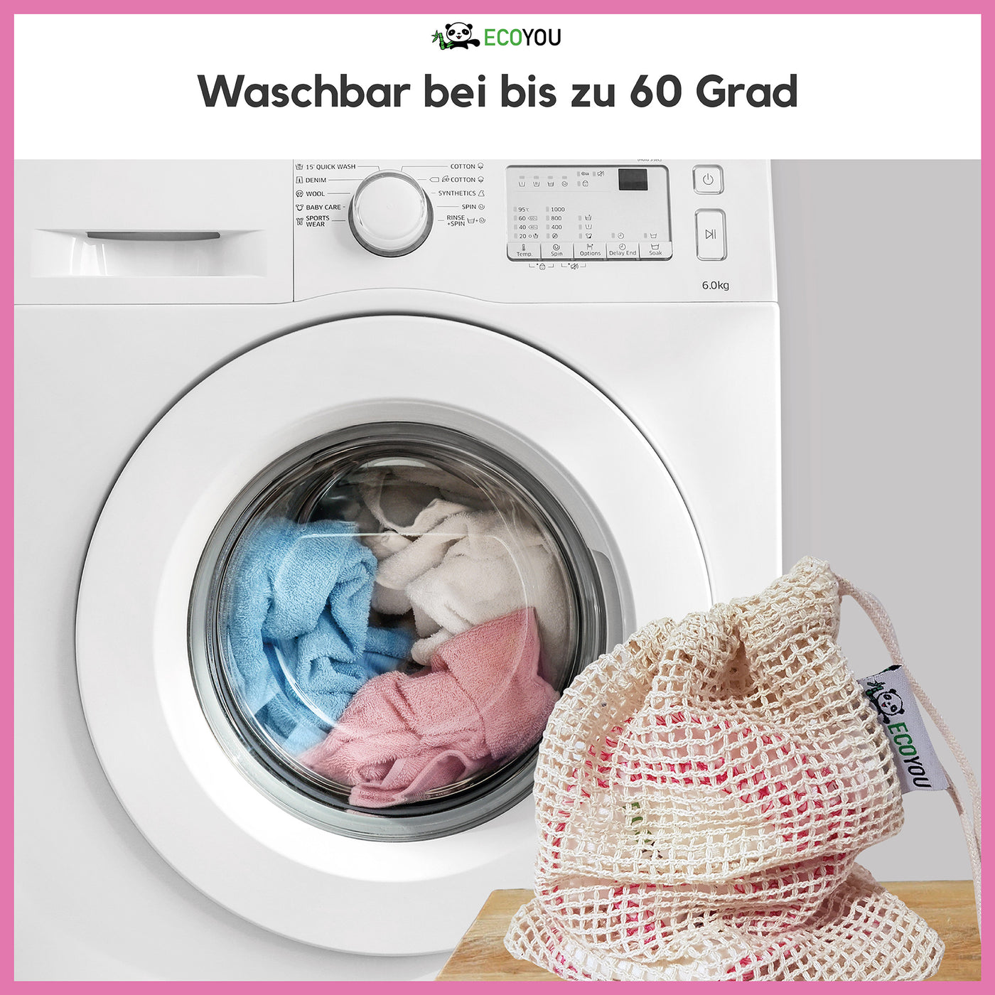 Die Abschminkpads können nach dem Gebrauch einfach in der Waschmaschine gewaschen werden. Sammle die Pads im mitgelieferten Wäschenetz. So bleiben alle Pads beim Waschen beisammen und du musst sie nicht in der Maschine suchen.